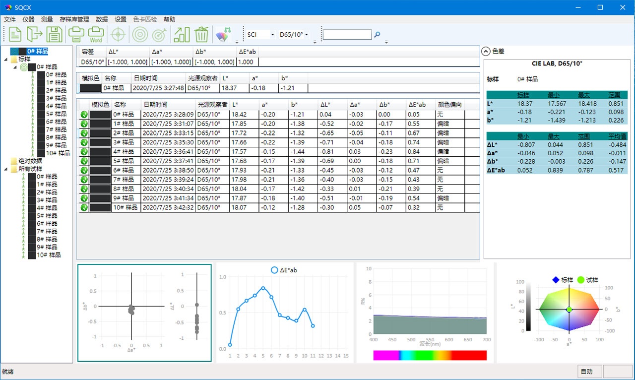 TS7030分光色差儀搭配的SQCX品質管理軟件,適用于各個行業(yè)的品質監(jiān)控和顏色數(shù)據(jù)管理。將用戶的顏色管理數(shù)據(jù)化,比較顏色差別,生成測試報告,提供多種色空間測量數(shù)據(jù),定制化客戶的顏色管理工作。