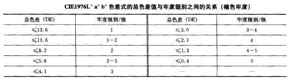 用測(cè)色儀器評(píng)價(jià)變褪色和沾色牢度是非常簡(jiǎn)單和快捷的,已經(jīng)得到了廣泛的應(yīng)用。用色差儀進(jìn)行染色紡織品牢度評(píng)級(jí)的過(guò)程如下:首先,對(duì)需要評(píng)價(jià)牢度的紡織品,按相關(guān)標(biāo)準(zhǔn)規(guī)定的條件對(duì)試樣進(jìn)行處理。然后對(duì)處理前后的試樣用色差儀進(jìn)行測(cè)色,并用選定的色差公式計(jì)算出處理前后的總色差。再根據(jù)選定的公式找到相應(yīng)的表,根據(jù)計(jì)算的到總色差值,就可以找到對(duì)應(yīng)的牢度級(jí)別。